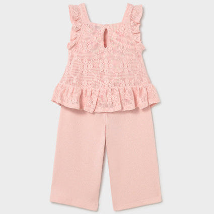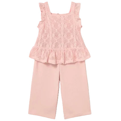The Pink Crochet Knit Set is a sweet and comfortable ensemble for little ones. In a soft pink, the set features a cozy tank top with a button back closure and matching pant bottoms with an elasticized waistband and faux drawstring for a flexible, secure fit. Delicate crochet detailing adds a charming, handcrafted touch, making this coordinated set perfect for playdates, casual outings, or relaxed days at home.