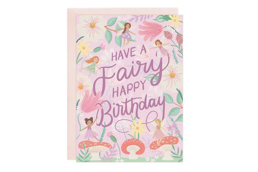 Enter into a fairy garden birthday wish! Adorned with little fairies, flowers, and toadstools, this greeting card is the perfect way to say "Have a Fairy Happy Birthday"!