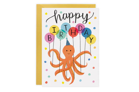 This octopus sure knows how to party! A card full of color and confetti, perfect for kids, ocean-lovers, or any colorful friends and family!