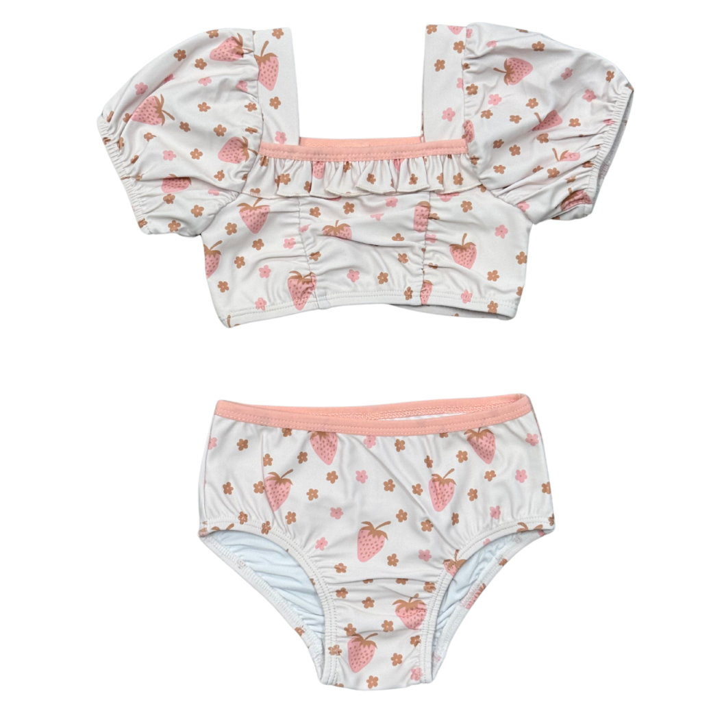 Keep your girl looking stylish with our Two-Piece Puff Sleeve Swimsuit! Featuring a secure, comfortable fit and fun, vibrant designs, this swim set is perfect for beach days and pool play.