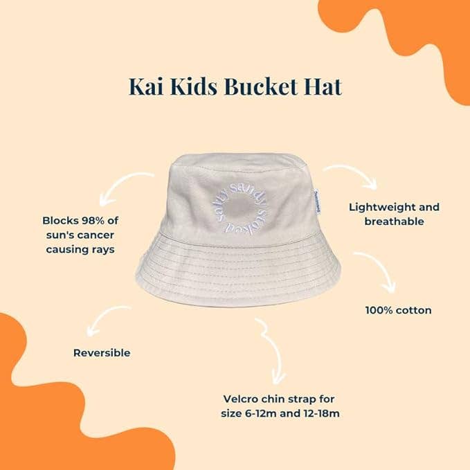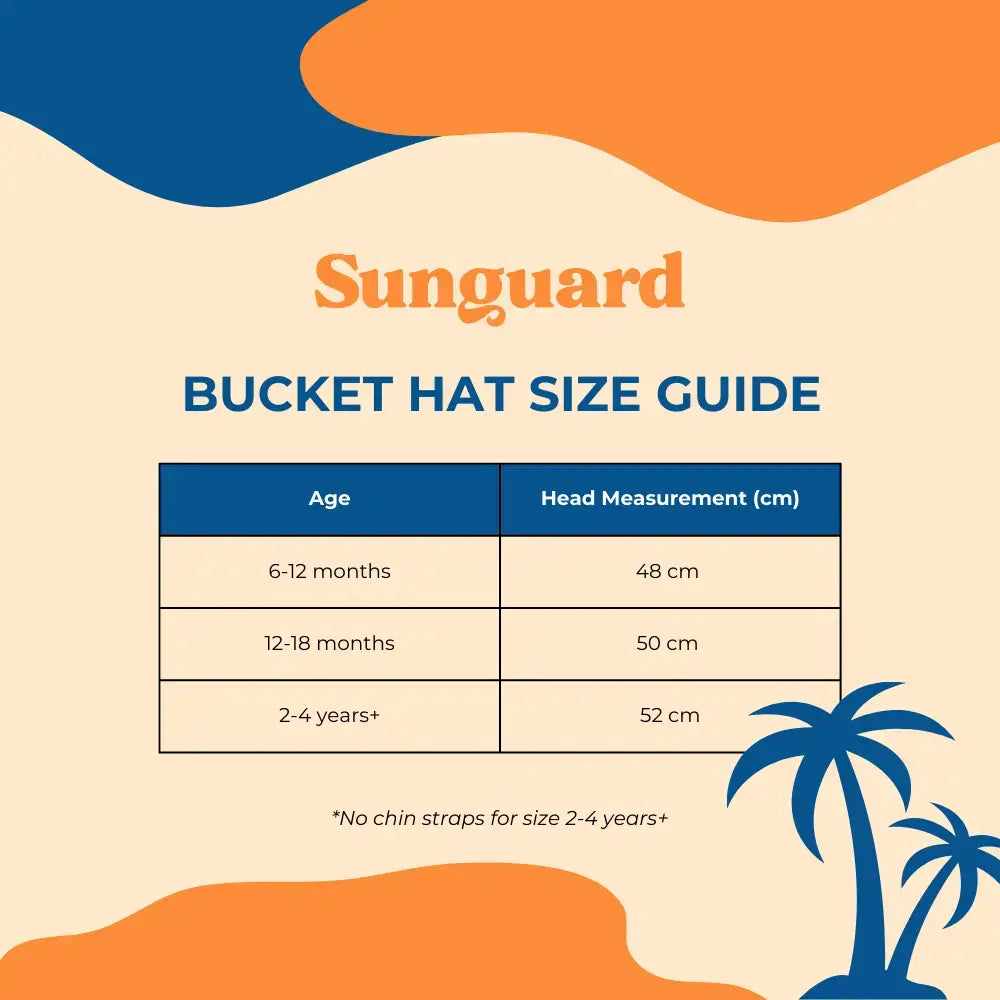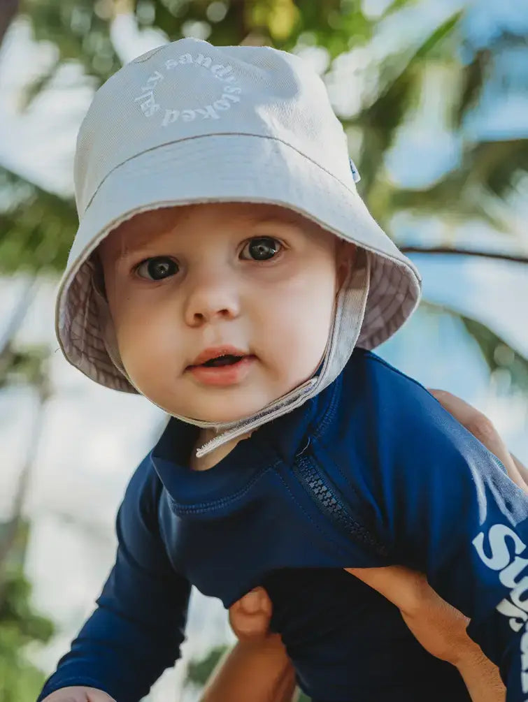 Get baby ready for a day at the beach with Sunguard’s reversible bucket hat. Shield baby's face from harsh sun rays with our bucket hat, constructed of 100% cotton and a Velcro chin strap to help keep sun hat on baby's head. California cool inspired designs available for both boys and girls in baby and toddler sizing.