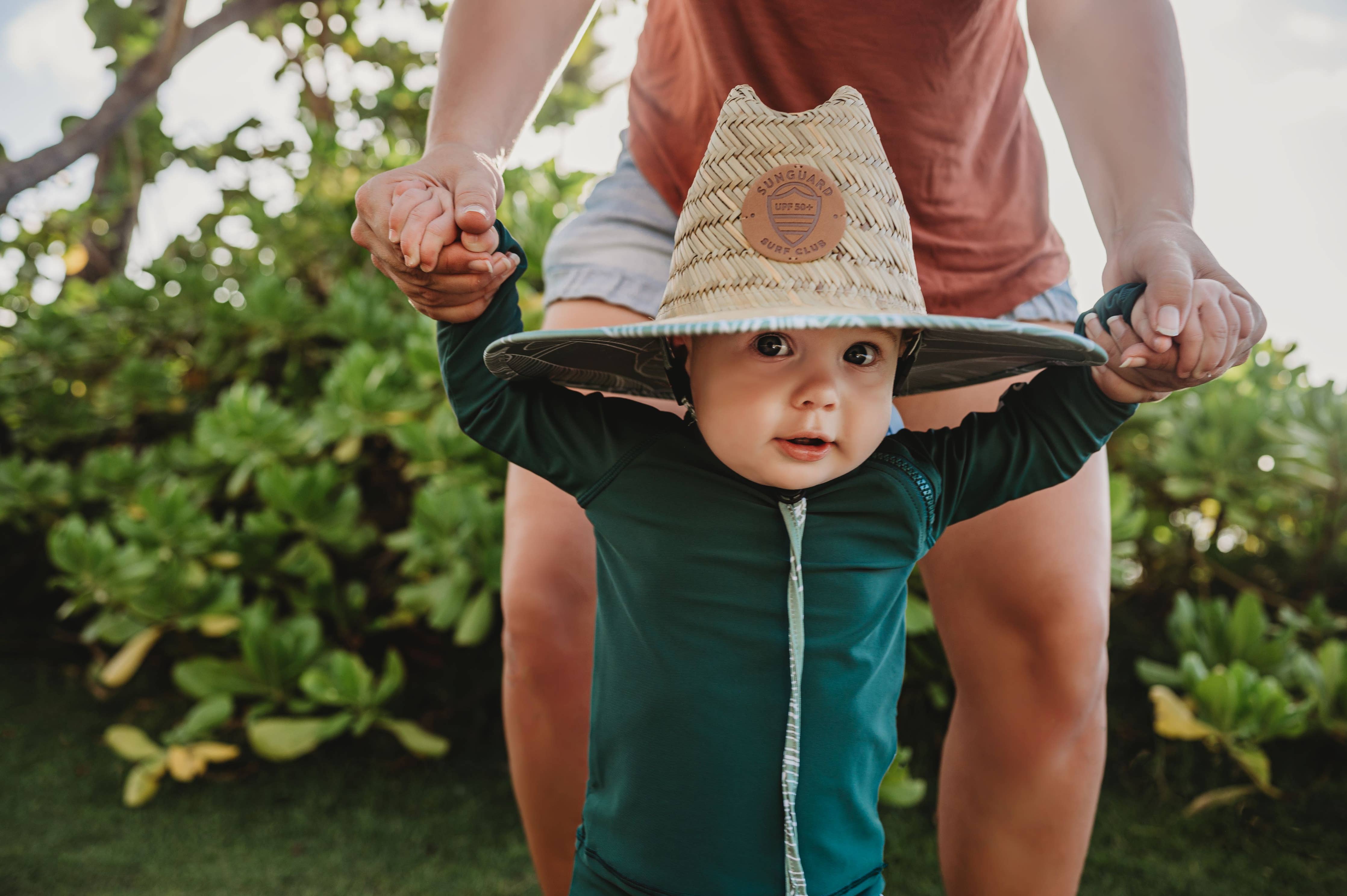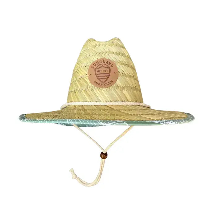 Get outside and adventure in our straw lifeguard hat for boys and girls. Woven of 100% natural straw fibers and featuring a large brim with UPF50+ material, our lifeguard hat offers optimum sun protection ensuring harsh UV rays are blocked from precious faces. Available in baby, toddler and youth sizing.