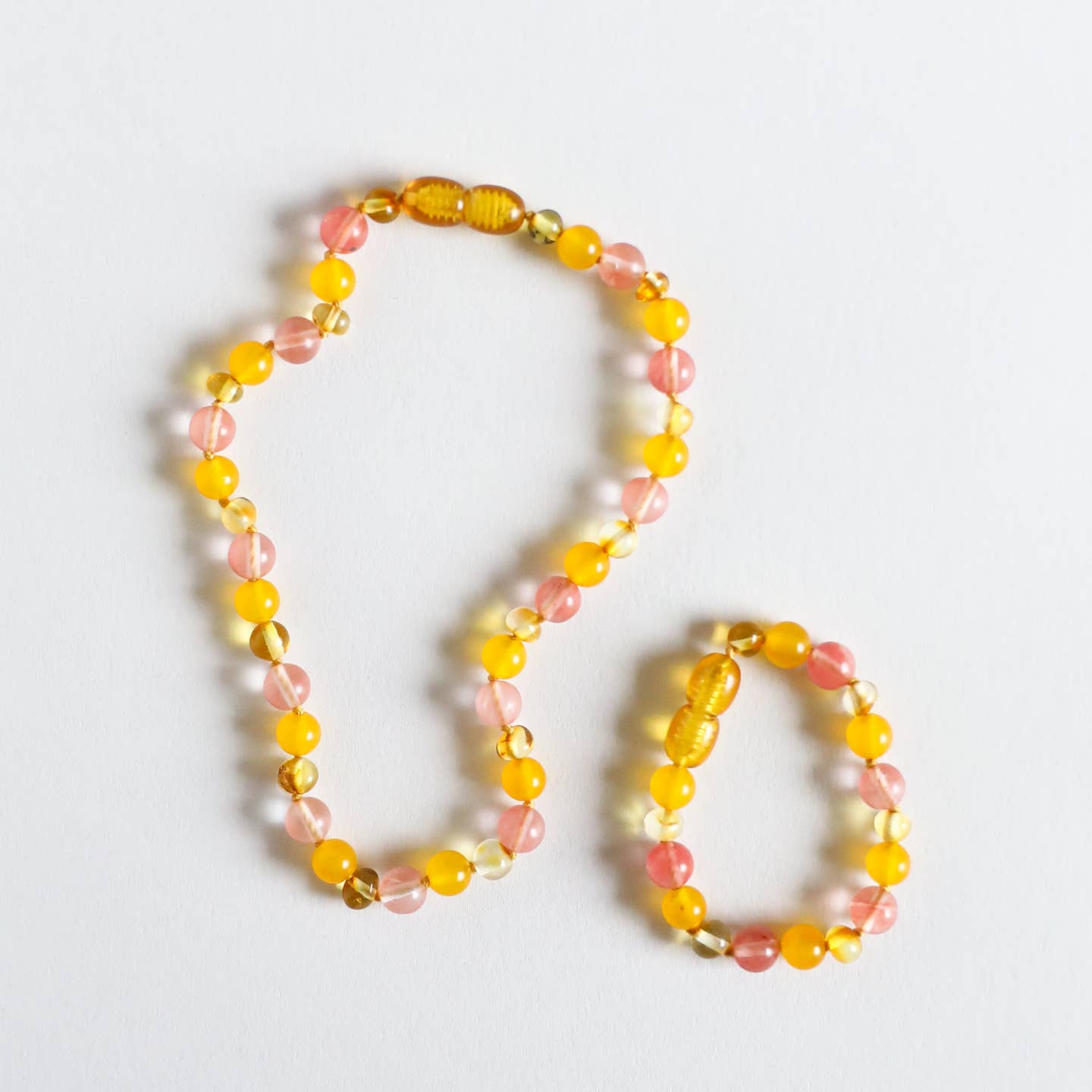 CanyonLeaf Polished Honey Baltic Amber + Honeysuckle Gemstone Necklace