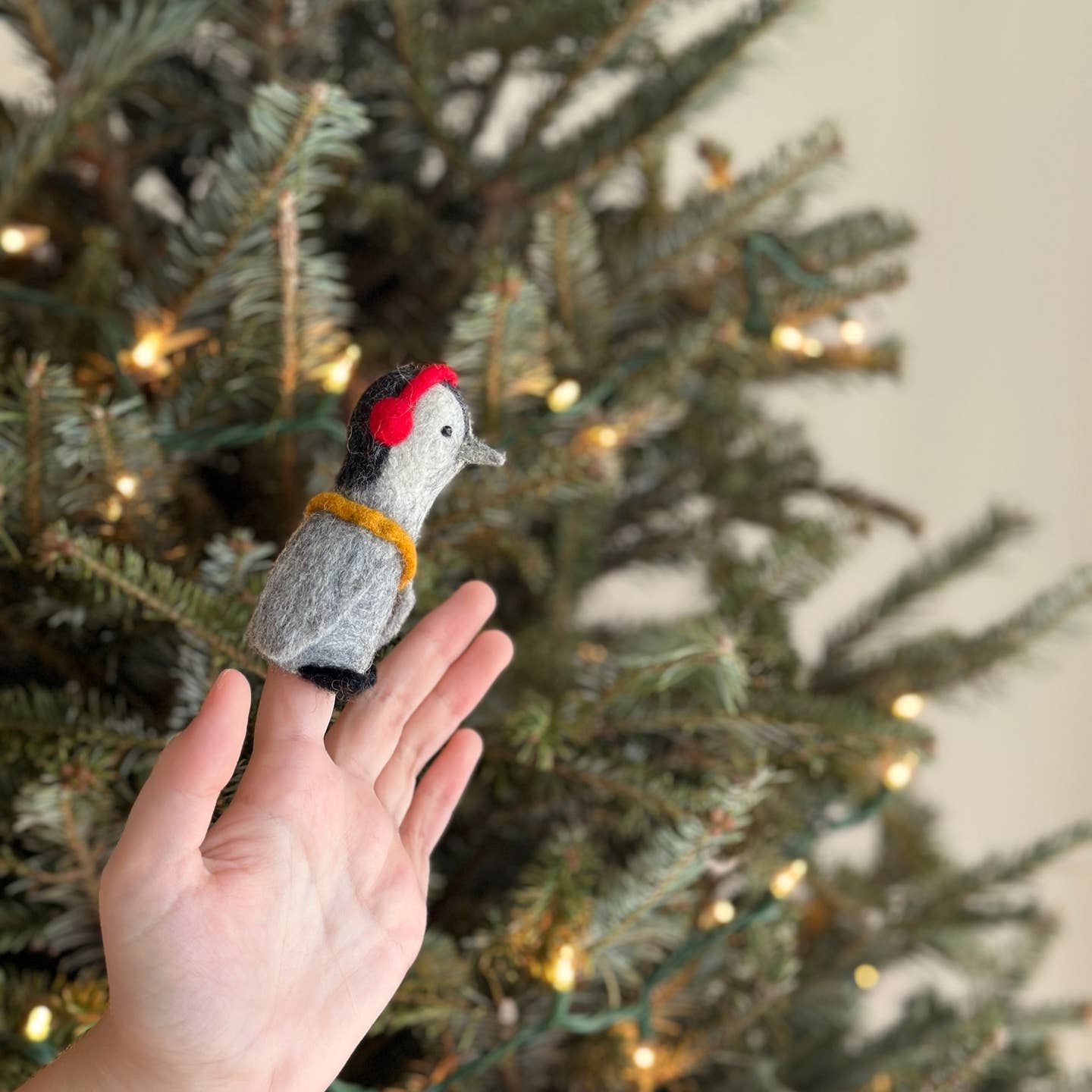 Introducing our unique and quirky teenage penguin finger puppet, complete with headphones and a hip attitude. The headphones and hip stance add a fun and playful touch, making it a great gift for kids and arctic animal lovers alike. Get ready to rock out with your cool penguin friend!