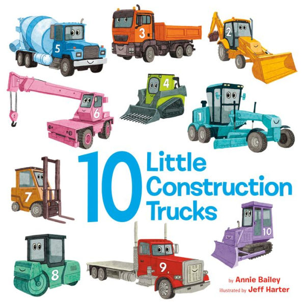 On each page of this exciting board book, young readers can count down construction vehicles from ten to one. Along the way, they'll learn about different machines on a construction site, such as bulldozers, rollers, forklifts, and concrete mixers. With action on every page, this is the perfect book to read aloud with your little vehicle fan.
