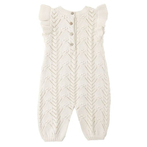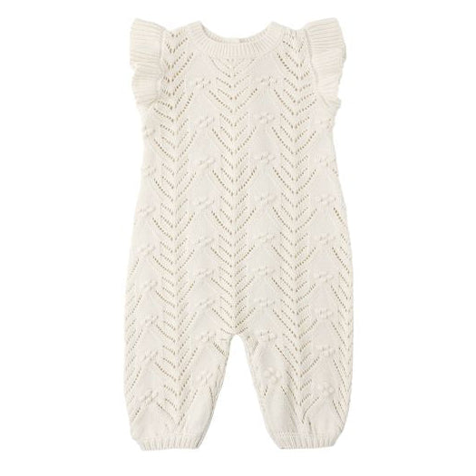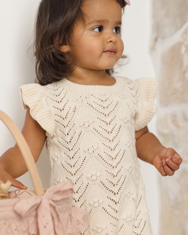 Our Mira Knit Romper features flutter sleeves, a bubble silhouette, and button-back closure for easy changes. This one-piece wonder is a must-have for your little gal's wardrobe.