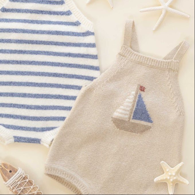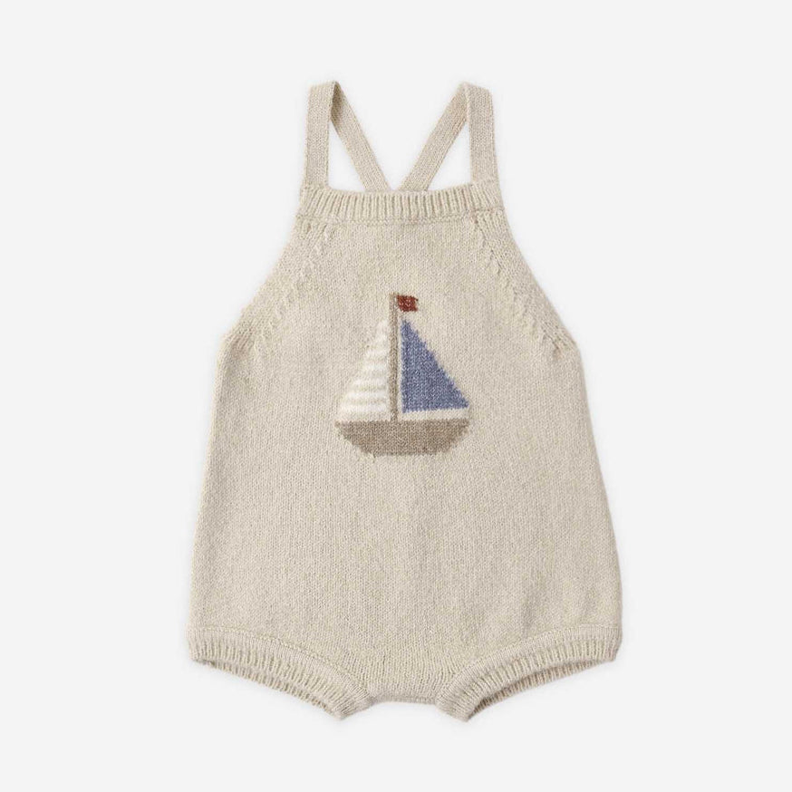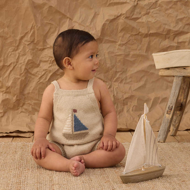 Featuring our ‘sailboat’ print on our ‘heathered pebble’ hue. Sail away to summer adventures in this fun look.