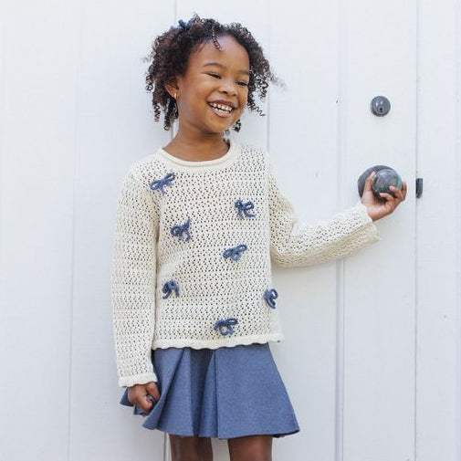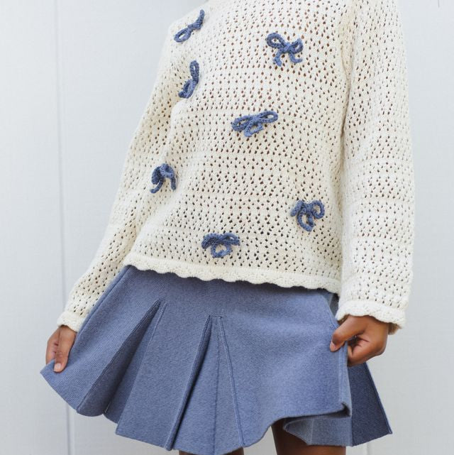 Featuring our marine 'bows' embroidery detail in our 'natural' hue. We are loving this summer crochet look!