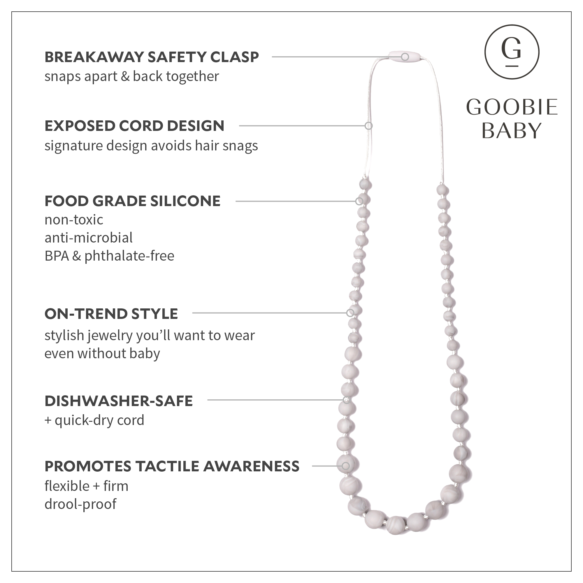 - sophisticated food grade silicone teething necklace, beautifully packaged and ready to gift.