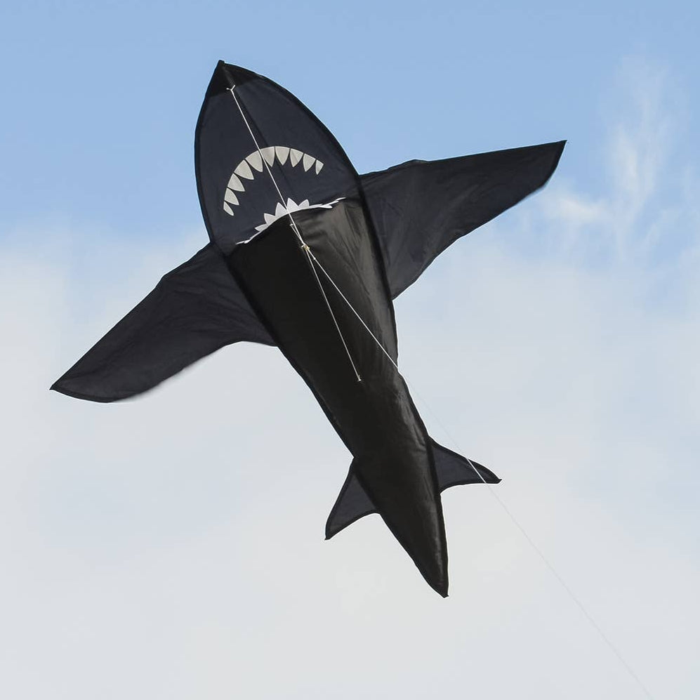 One of our top selling kites! This 4' 3D Shark is a blast to watch as it swims across the sky! The tooth lined jaws open to allow air to flow through the body of the shark creating a sensational 3D effect. The tail whips from side to side as the kite swims gracefully through the blue sky. These sharks are fun for the whole family!