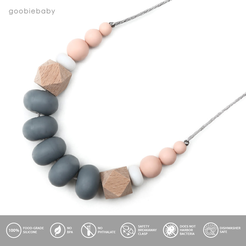 - sophisticated food grade silicone teething necklace, beautifully packaged and ready to gift.