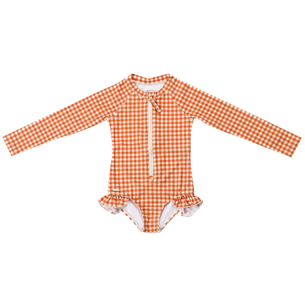 Long Sleeve Rashguard Ruffle Swimsuit - Sienna Gingham