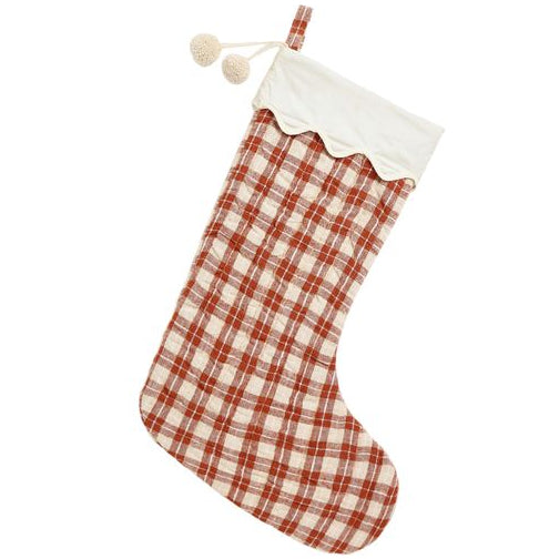 Hang our Christmas stockings from your mantel. With delicate trims and patterns, and a loop for hanging.