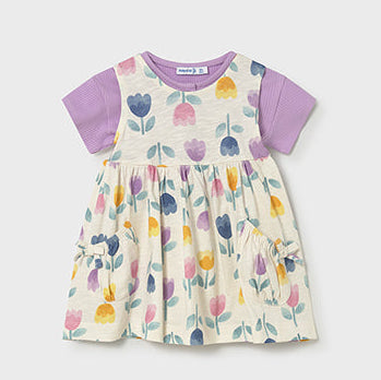 Two pieces in the set, featuring a floral baby doll dress, and a short sleeve button up shirt to match!